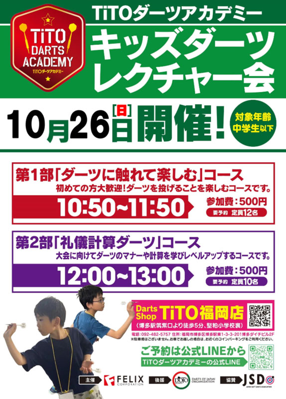 2025年10月26日(日)に、次世代を担う子供たちにダーツの楽しさを体感してもらえるよう、ダーツレクチャー会を開催いたします。